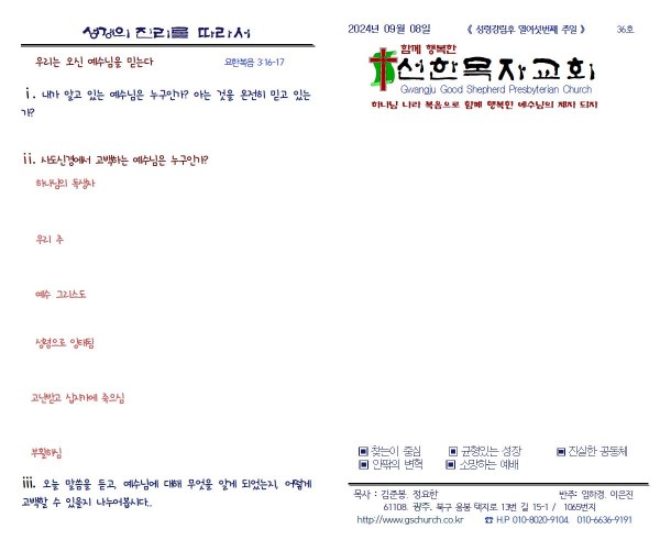 2024. 9. 8. 주일예배 주보 페이지 정보 작성자 정요한 목사 작성일24-09-07 17:37 조회720회 댓글0건 관련링크 이전글 다음글 목록 본문 2024. 9. 8. 주일예배 주보 댓글목록 등록된 댓글이 없습니다. 이전글 다음글 목록