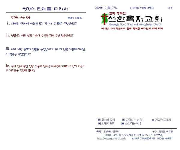 2024. 1. 7. 주일예배 주보 페이지 정보 작성자 정요한 목사 작성일24-01-06 17:07 조회1,172회 댓글0건 관련링크 이전글 다음글 목록 본문 2024. 1. 7. 주일예배 주보 댓글목록 등록된 댓글이 없습니다. 이전글 다음글 목록